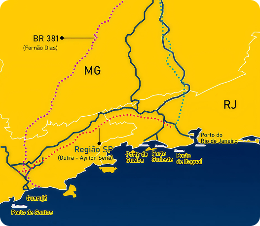 Estamos no coração da siderurgia brasileira, com malha ferroviária que conecta os principais centros de produção aos portos do Sudeste e às principais rodovias (BR-381, Dutra, Ayrton Senna e BR-040).